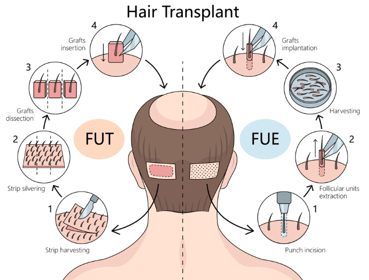 This is when the doctor collects healthy hair from a part of your head that has lots of it, usually the back. This area is special because the hair there doesn’t fall out easily. It’s like picking the best apples from a tree to share with others! There are two ways doctors do this.